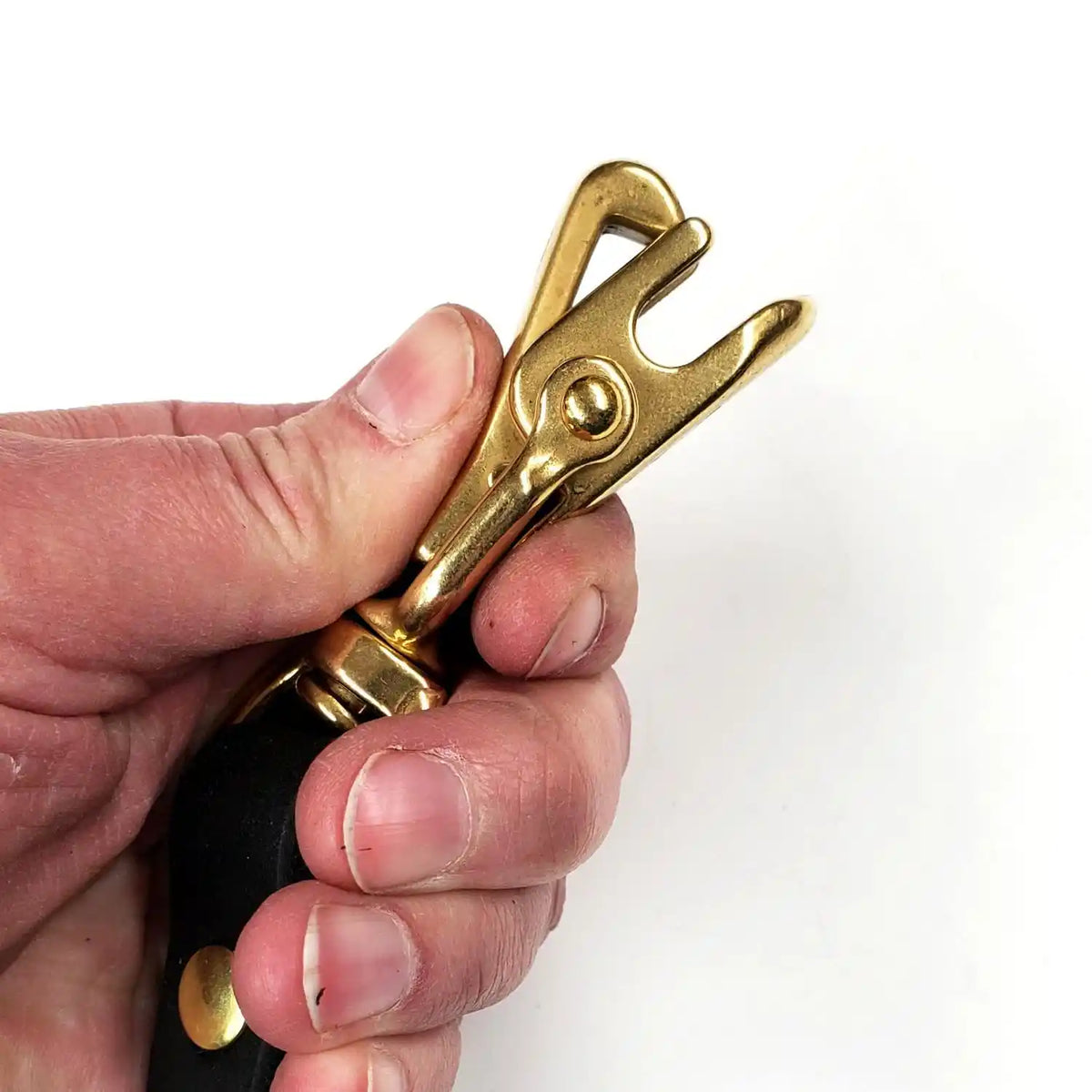 This heavy-duty snap is a classic in the working dog world. It locks closed with the turn of a wheel. Release the lock and the snap can be opened even under load.