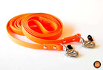 Caution! The leash will snap back once released if there is pressure on the leash. Always use the pull tab to release the shackle snap; using the O-ring alone may result in injury. Keep well away from face. Before using in the field, we strongly suggest some practice to familiarize yourself with the motion required and the way the shackle releases.