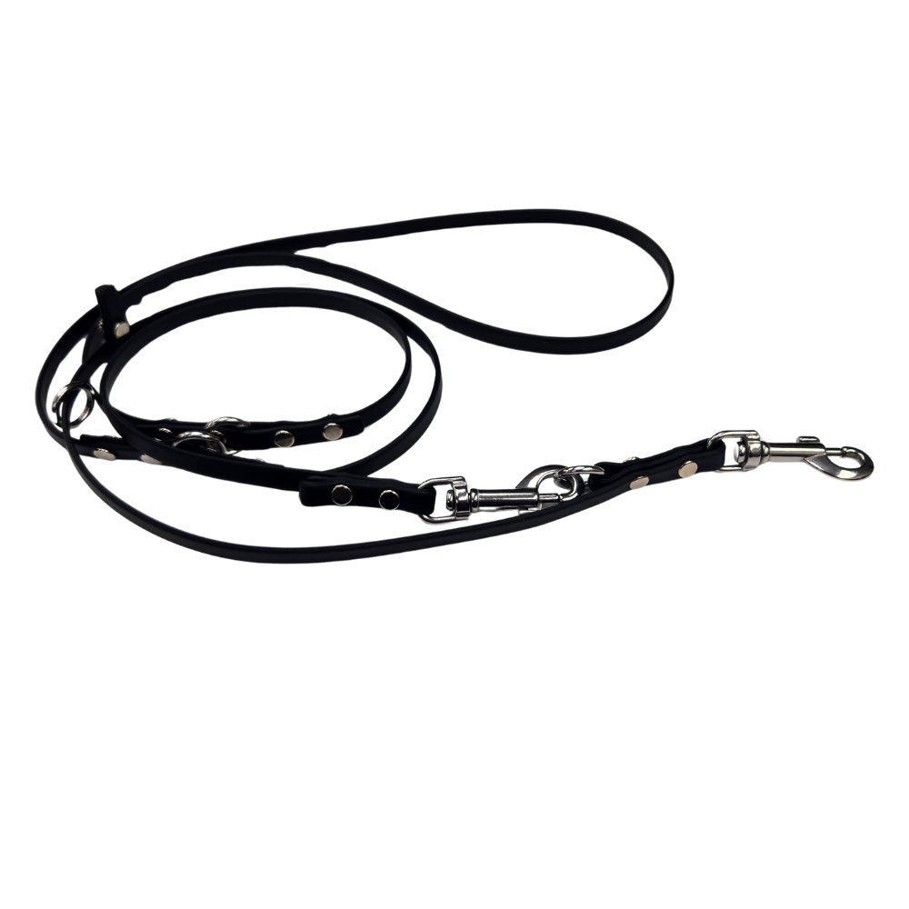 Five O-rings are strategically placed along the length of this leash to offer the most configurations possible. This means that you can take the snap at either end of the leash and clip it to any of the O-rings to make your leash nearly any length you need! “Double Up” the leash by clipping TWO rings at once for even more variations.