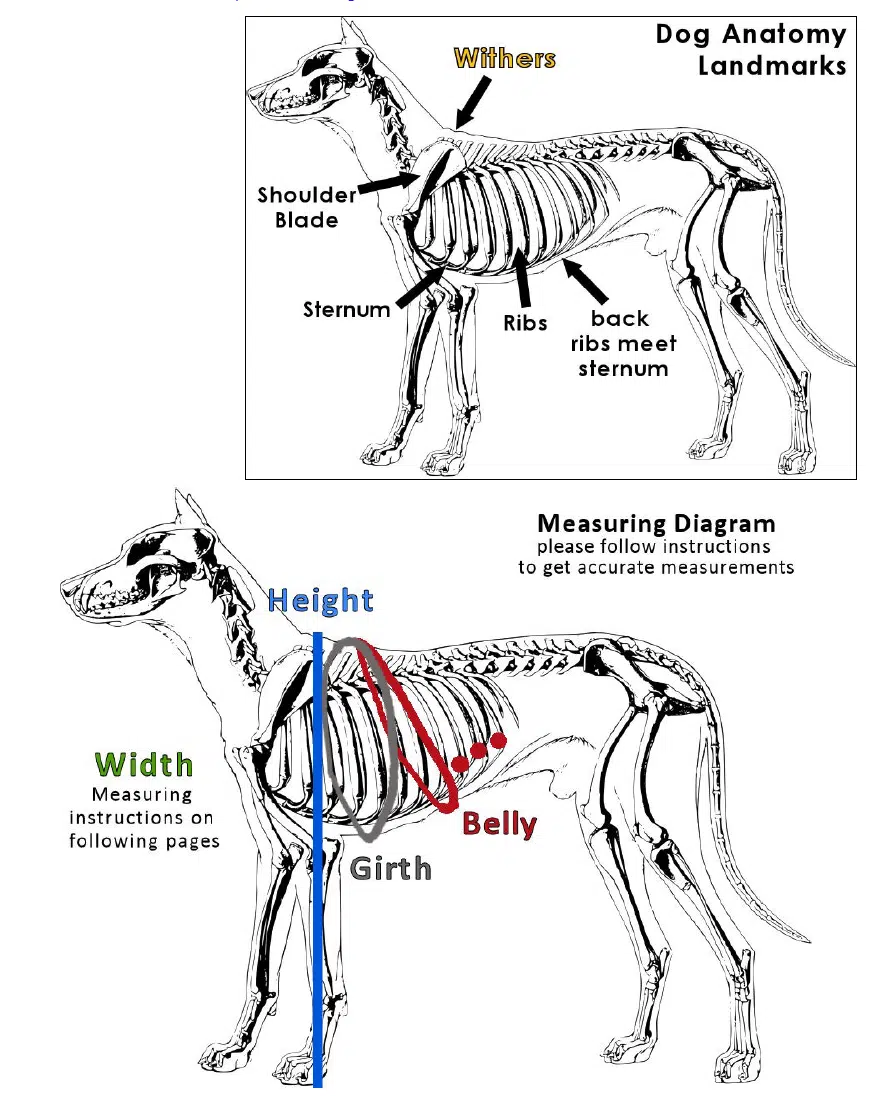 Welcome! This page has everything you need to measure for your new custom harness, except the dog and a measuring tape!