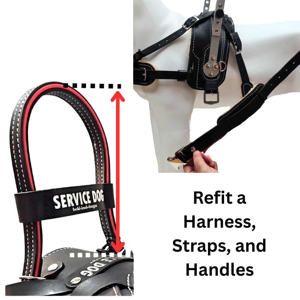 Our modular harness designs make it easy to adjust fit, replace parts, or correct measuring errors. Use the resources below to re-measure or refit your harness anytime it’s needed.