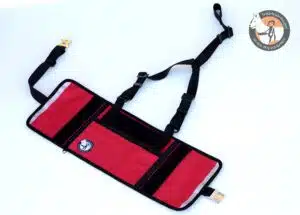 - Velcro tabs for attaching to harness are 6 inches apart, fits around straps up to 1.25 inches wide.