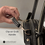 Clip-on handle: Minimal, low profile option clips onto heavy-duty d-rings toward the top of the harness saddle. Makes a good second handle for occasional tasks like getting up from a seated position, or for occasional momentum assistance. Can be made to any length/height. Available as a Short Grab Handle sized so it’s just enough to get ahold of for the shortest handle possible (about 2.5 inches)
