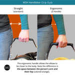 The MSH harness has a rigid metal support handle made from lightweight, high-grade aluminum.These handles are designed with a low center of gravity to distribute pressure around the dog’s core. Metal support bars are permanently mounted to the harness saddle and will not loosen over time. These support bars also feature support D-rings on each side which can be used for attaching other handle styles if needed.