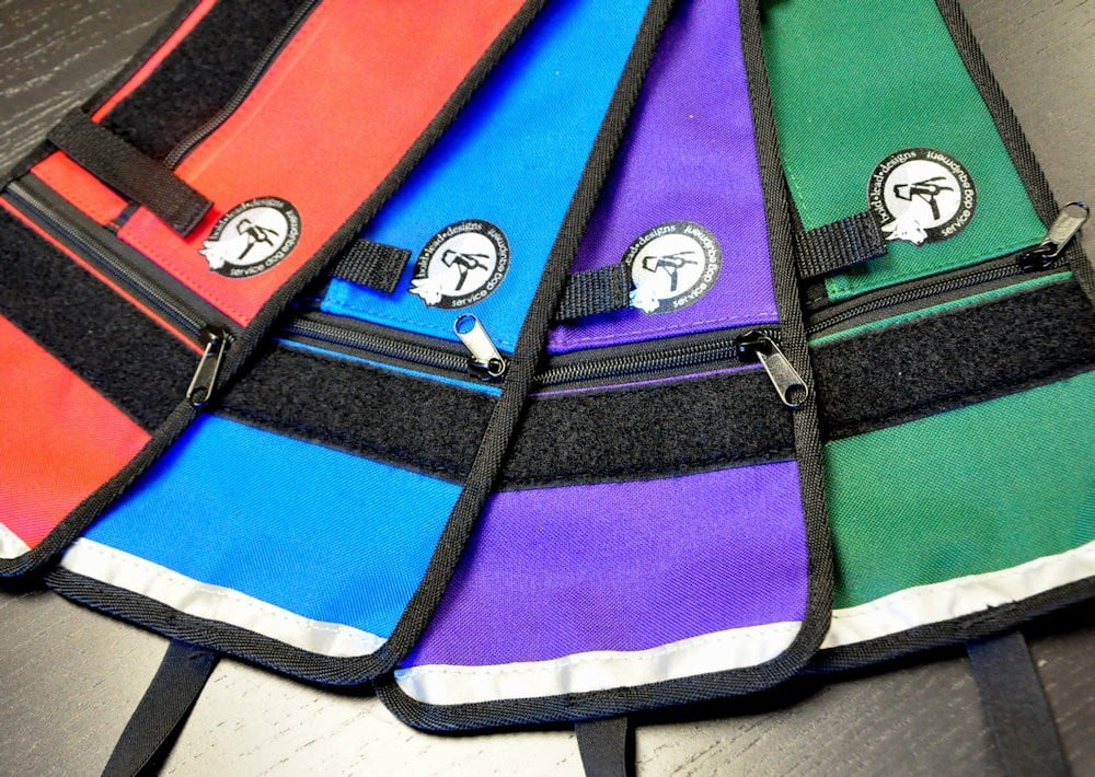BLD’s Service Dog Cape/Vest is a utilitarian accessory for displaying identifying patches, increasing visibility, and holding essentials, such as medicine, paperwork, a wallet, phone, clean up supplies, or other small items. Attach like a cape to your dog’s harness, or wear it as a vest by adding a chest strap (available separately).