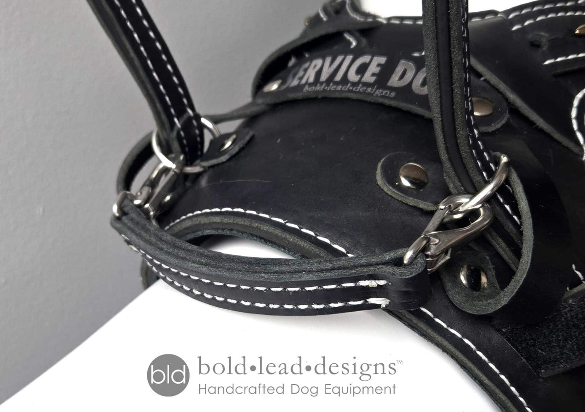 Made from layered, 5/8″ wide leather and stainless steel snaps just like BLD’s other leather harness handles. This grab handle can be used anytime you need the dog to pull with a quick tug, such as for climbing stairs, getting up from a seated position, and even pulling a wheelchair on occasion.